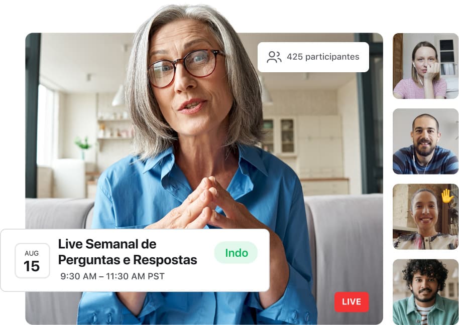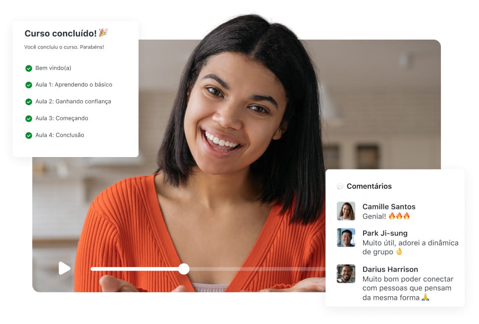 Construa um espaço seguro para a sua comunidade, eventos e cursos — tudo alinhado à sua marca.