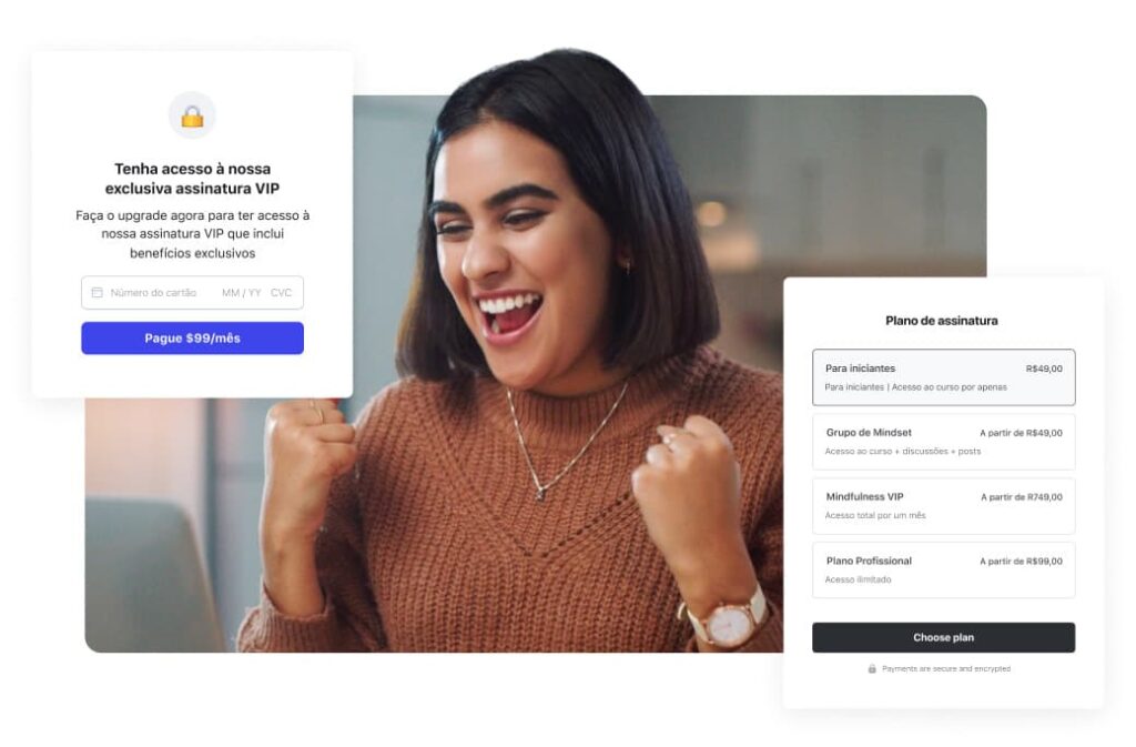 Esteja você oferecendo um curso, uma assinatura, acesso único ao seu conteúdo ou assinaturas mensais recorrentes - a Circle tem tudo o que você precisa.